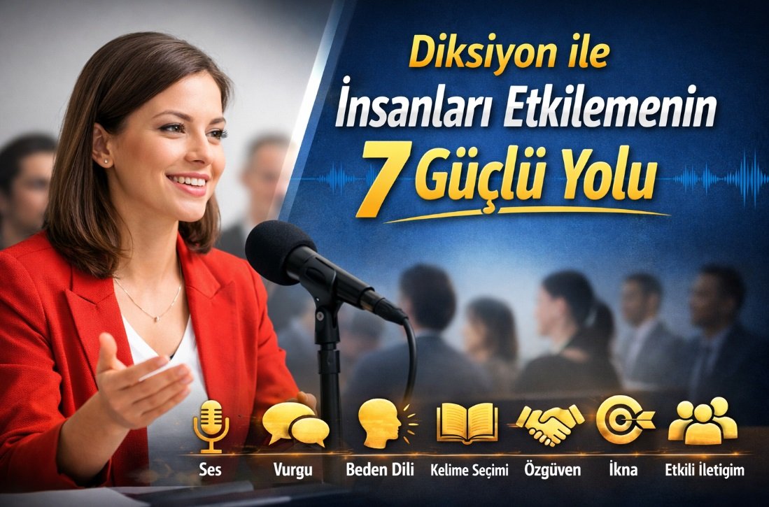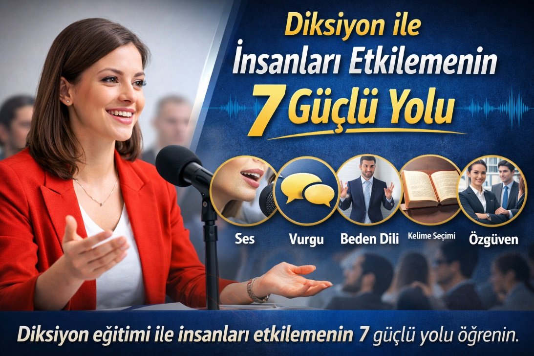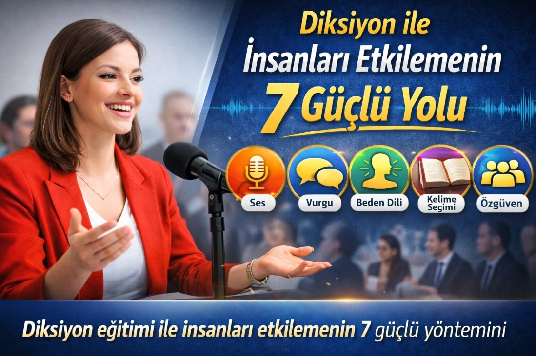 Diksiyon eğitimi ile etkili konuşma, vurgu, beden dili ve özgüven kazanarak insanları etkilemenin 7 güçlü yolunu keşfedin.