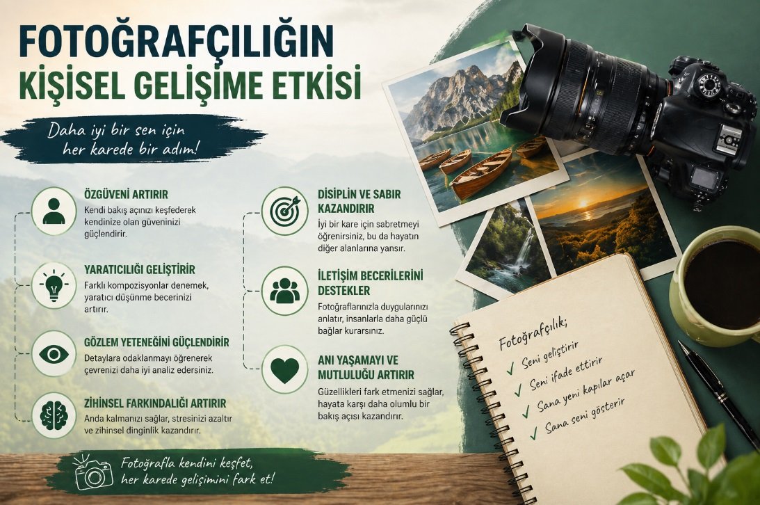 Fotoğrafçılık; yaratıcılık, disiplin ve farkındalık kazandırarak kişisel gelişimi destekler.