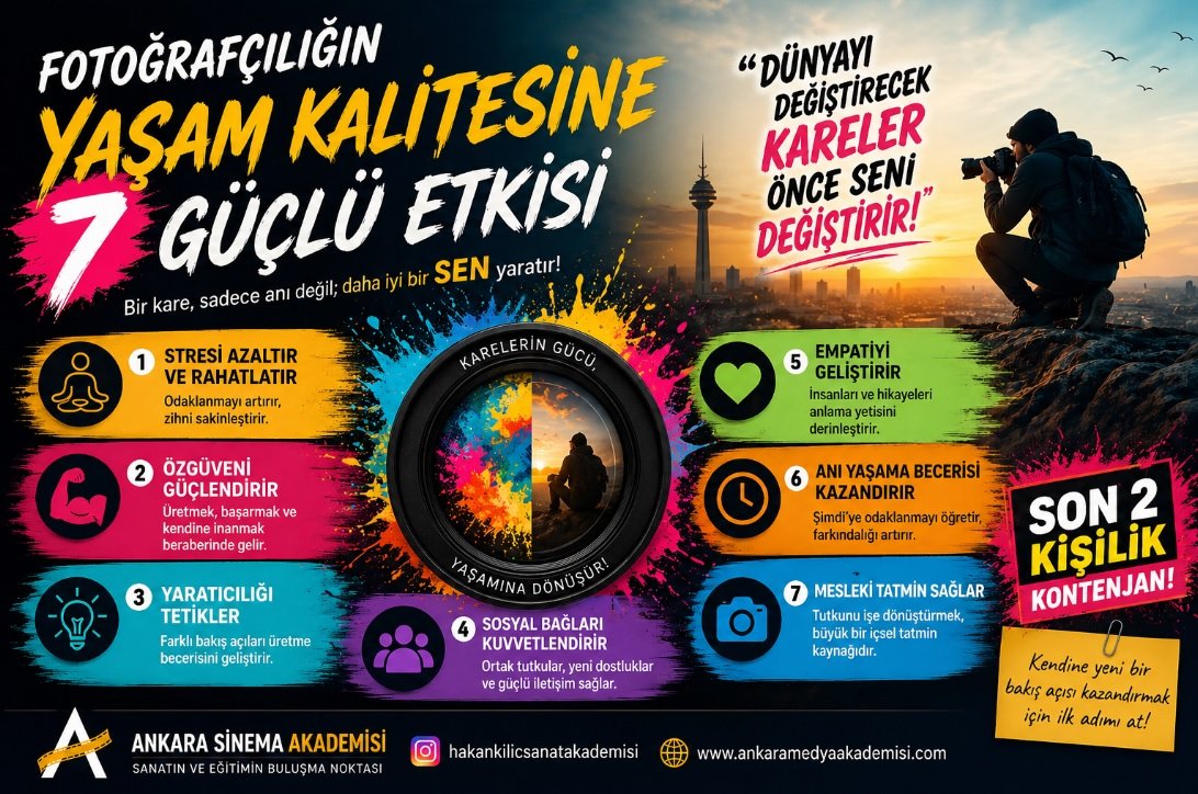 Sonuç olarak, fotoğrafçılık yalnızca güzel kareler üretmek değil; hayata daha bilinçli, estetik ve anlamlı bir bakış geliştirmektir. Doğru eğitimlerle desteklenen bu süreç, bireyin hem kişisel hem de profesyonel yaşamında kalıcı ve güçlü etkiler yaratır.